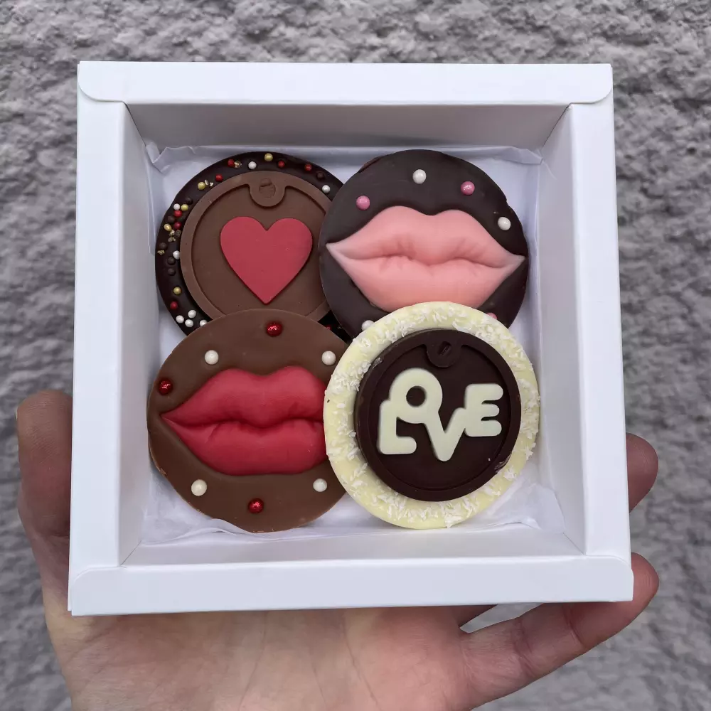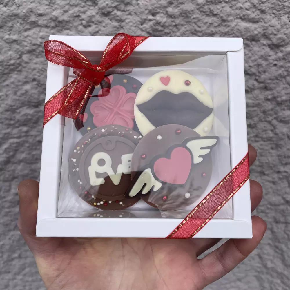 Coffret de mendiants LOVE comprenant 4 mendiants en chocolat, constitue un cadeau idéal pour la Saint-Valentin.
